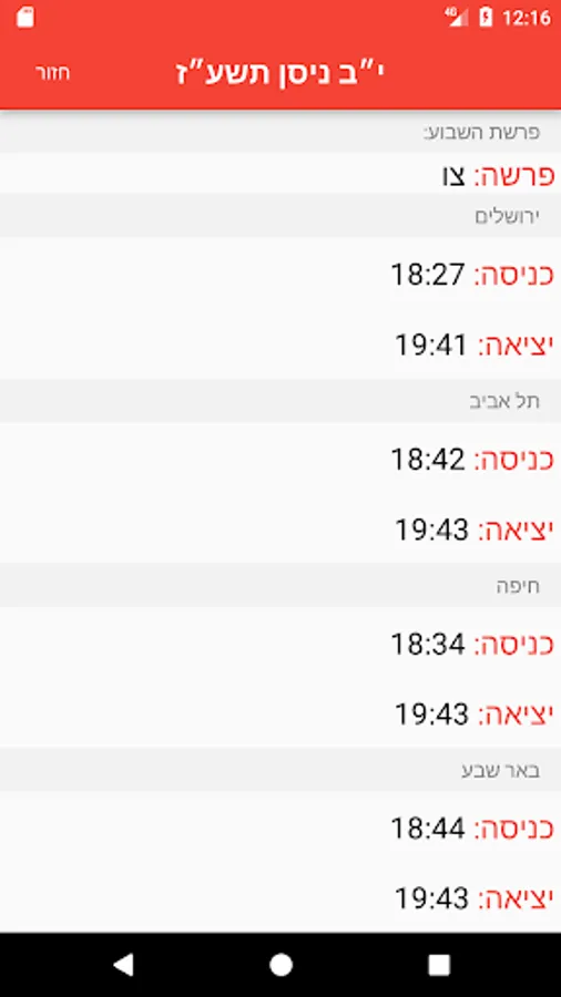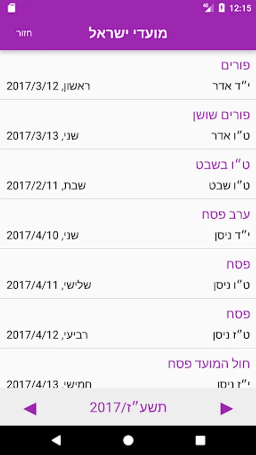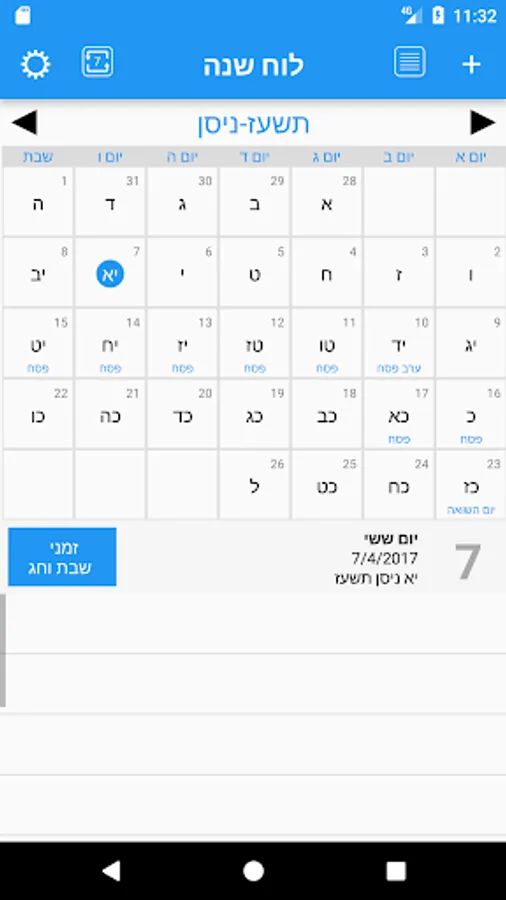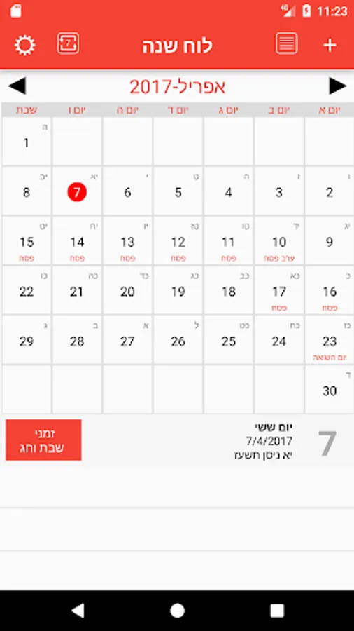 The table presents the Holidays of Israel, temporary entry of weekends and holidays, as well as weekly Torah portion
