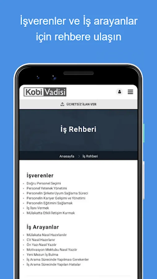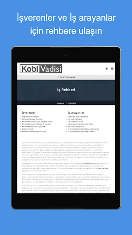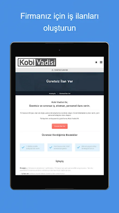 With the Kobi Valley human resources application, for the sector your company is affiliated with; You can create your job, staff, personnel, worker postings..