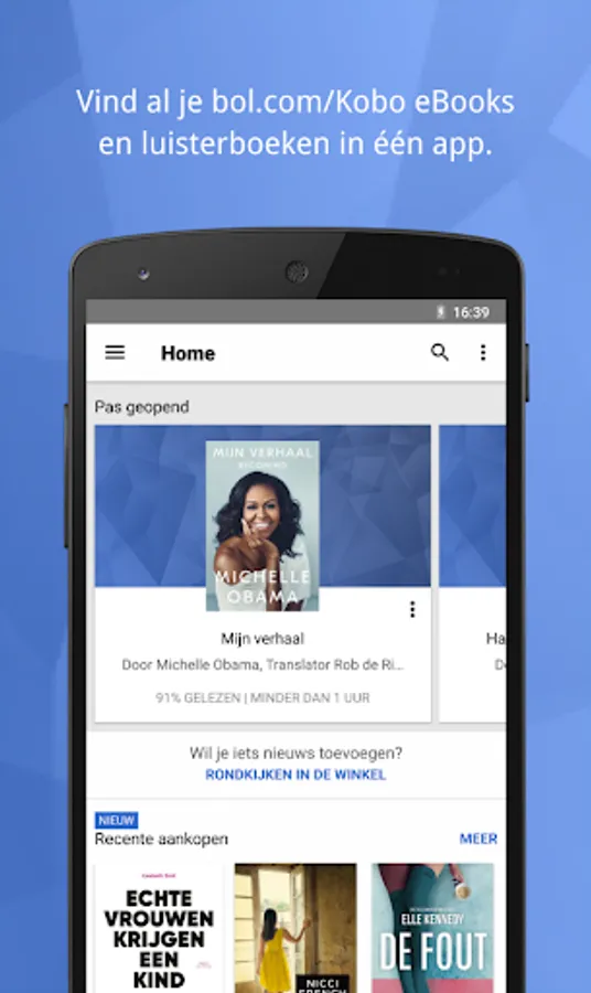 Nice that you take the time to read about the ebook and audiobook app from bol.com and Kobo. In the same time you can install it for free, but of course you love reading so you cannot skip the following paragraphs about the bol.com Kobo app. Guess what? We are happy to open a booklet!