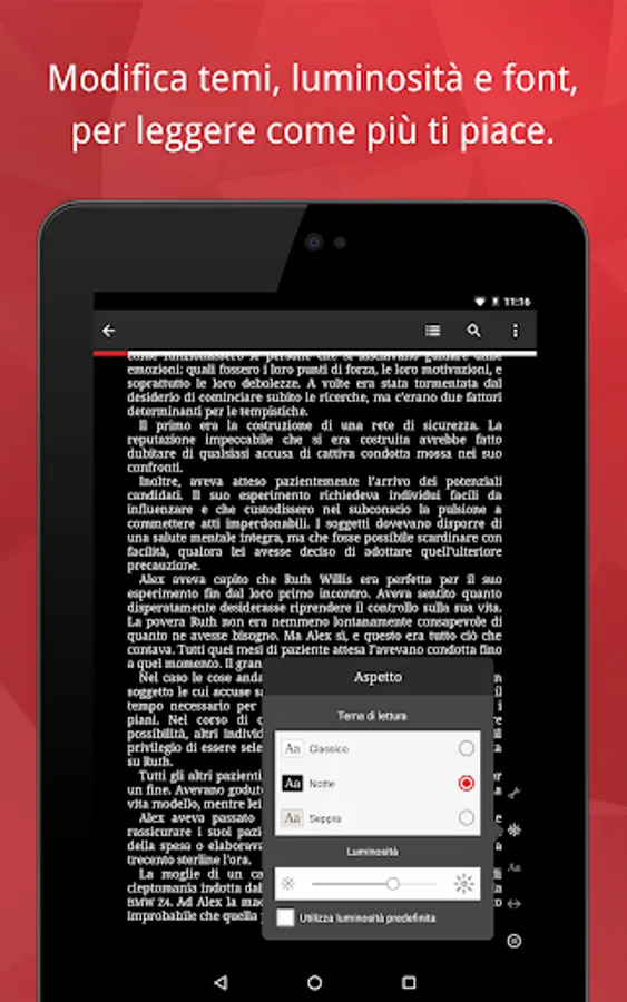 • Create and customize your perfect reading experience. Enjoy crisp, clear text, and adjust the size and style as you like. Try the night mode to avoid eye strain before going to bed; lock the screen in landscape or portrait mode to read however you like.
