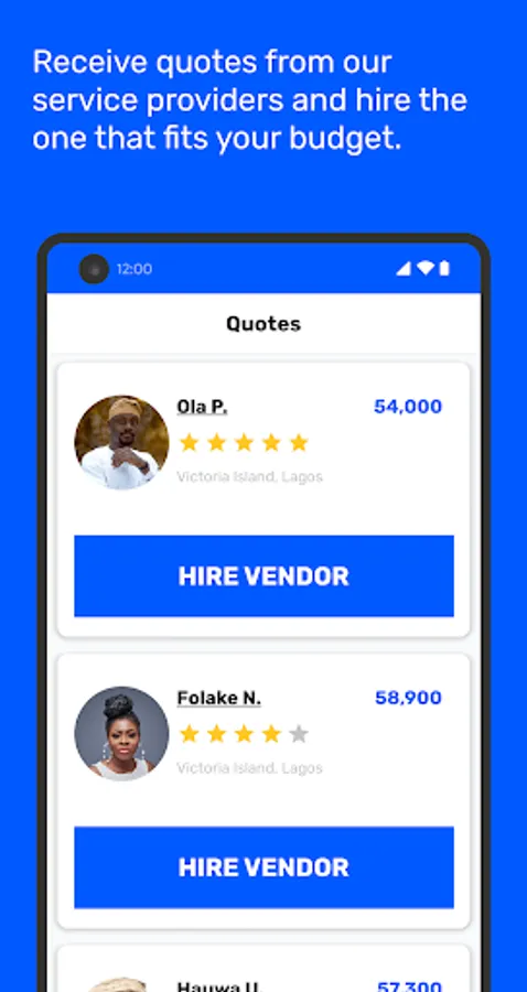 2. Receive quotes from vendors, hire and deposit payment into escrow