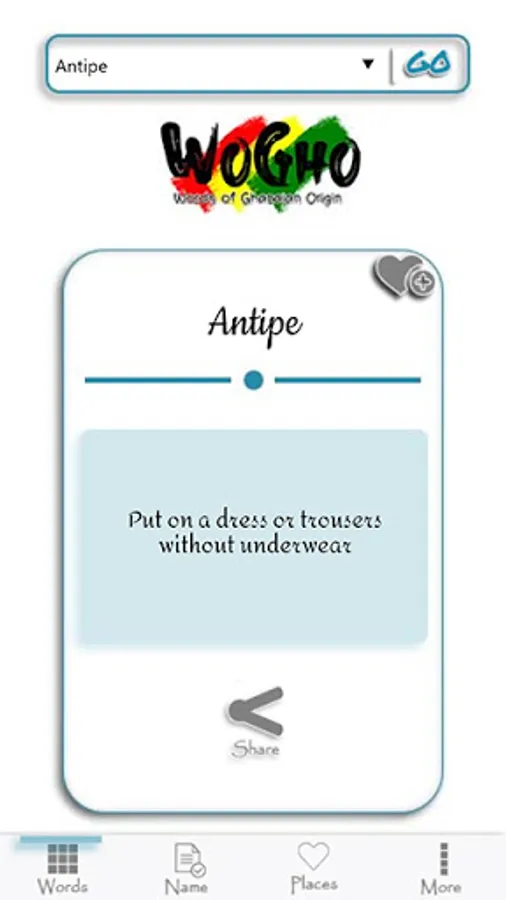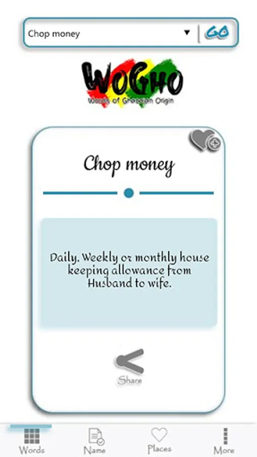 Words from various Ghanaian local languages that is unique to Ghana. WoGho is a simplified guide to some slang and terms commonly used among Ghanaians.