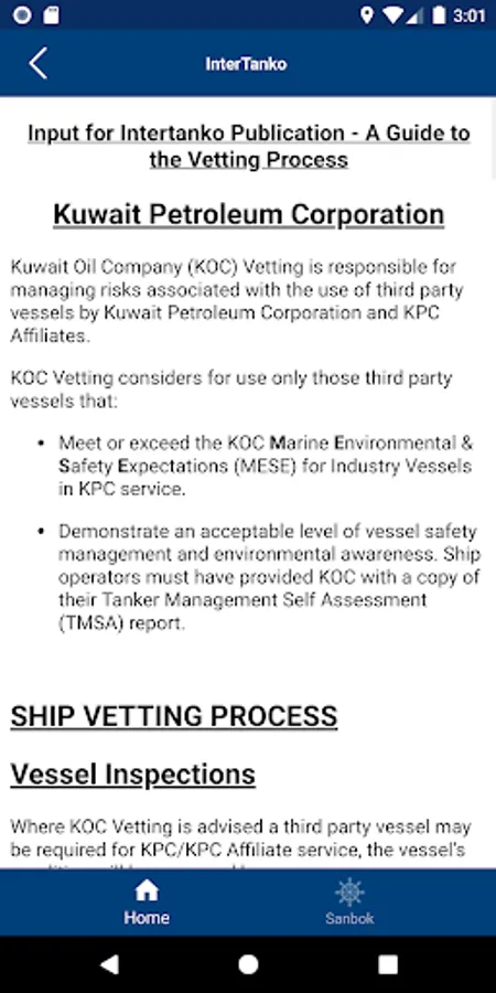 Providing access to all users to review KPC ship vetting requirements as published in the INTERTANKO guide.