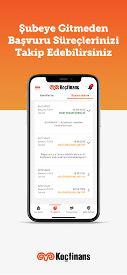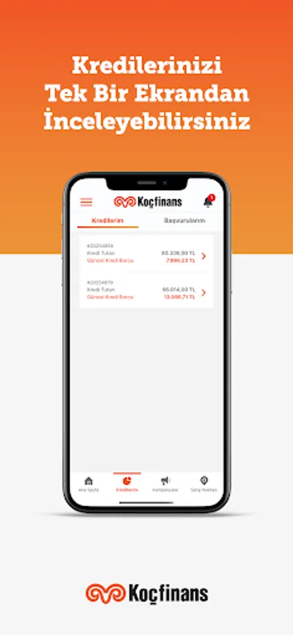 Second hand and brand new vehicle loan applications, loan calculation, payment tracking and all the loan transactions you need are at your fingertips with Koçfinans Mobile!