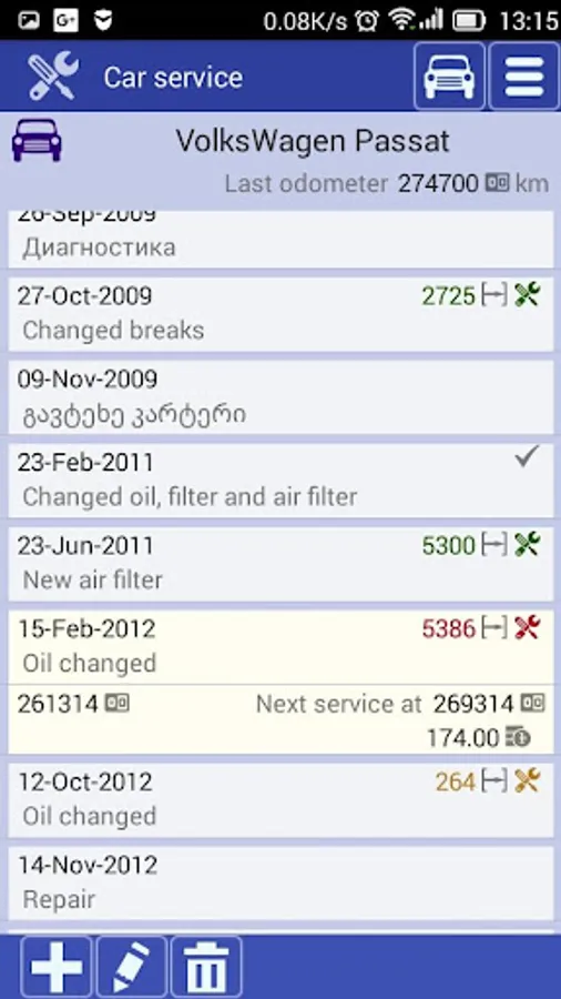 Car Tool is simple, easy to use android application to track your mileage, fuel consumption, fuel costs and car services.