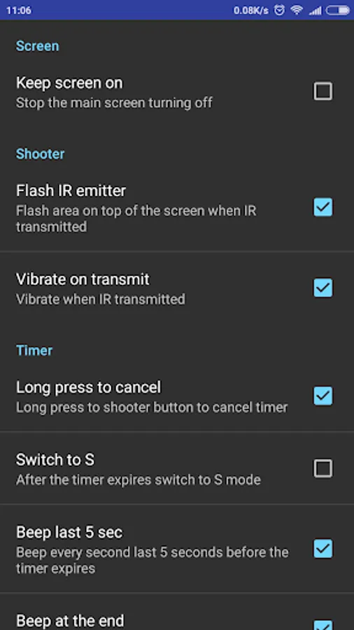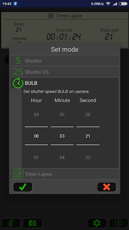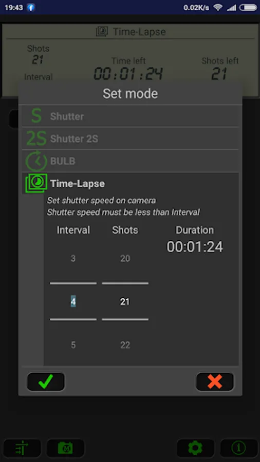 - Modes: Shutter, 2sec (2 seconds delay shutter), timer.