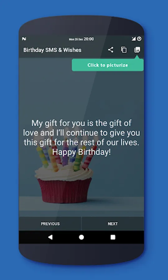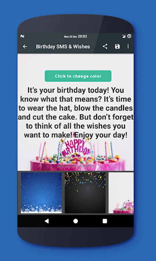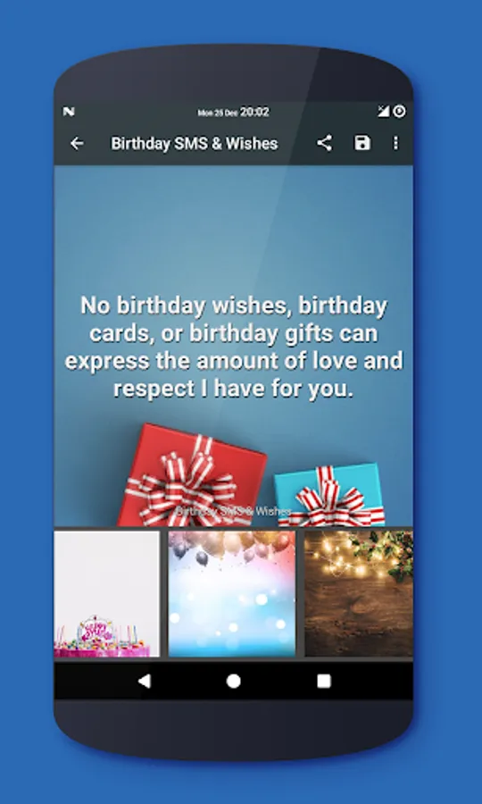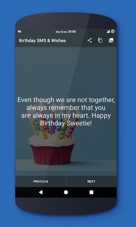 This application contains several nice happy birthday sms & wishes. Just choose a new birthday message by swapping on device, read it & share.