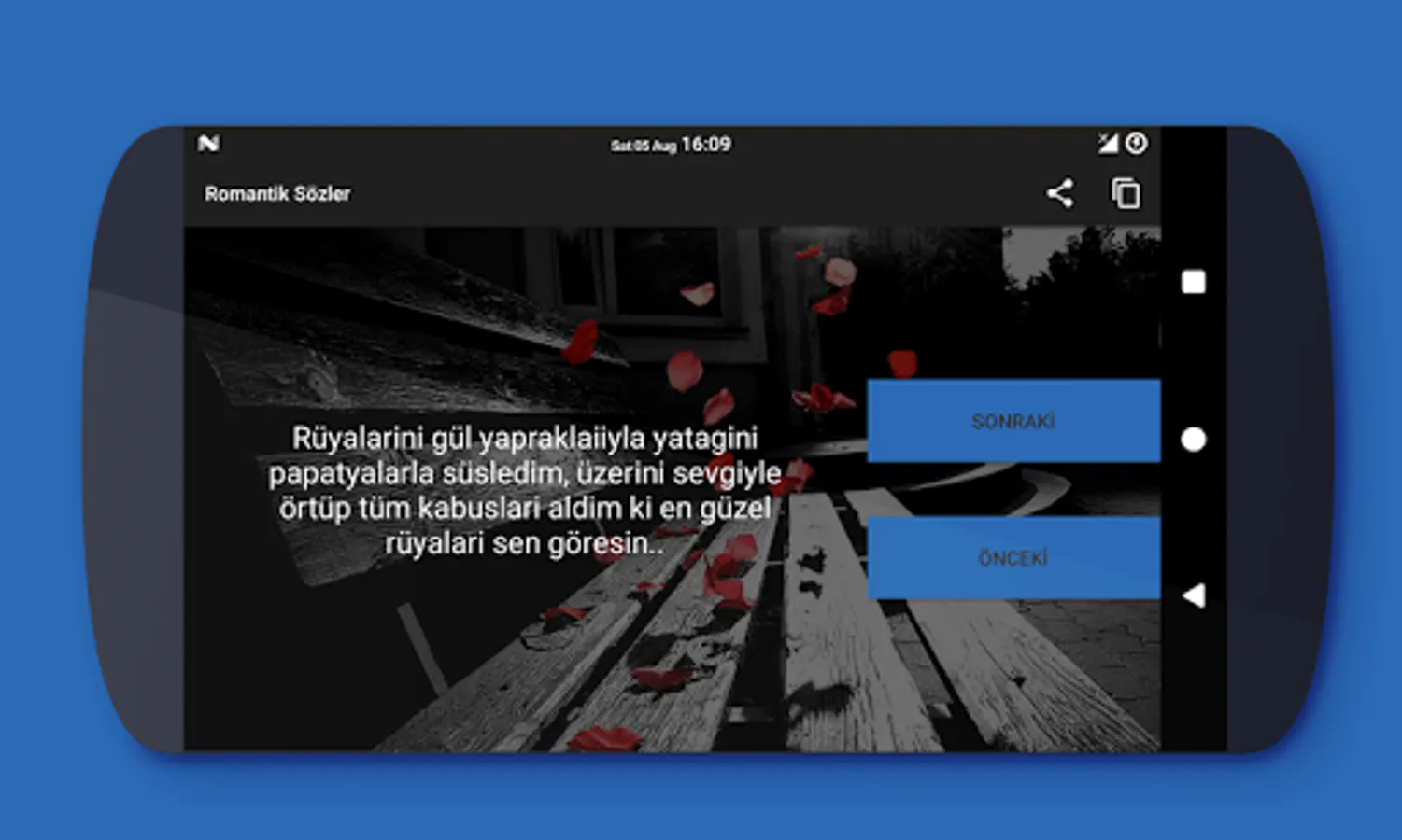 - With the Share option, you can share messages / words on social networks such as whatsapp sms gmail mail facebook and twitter.