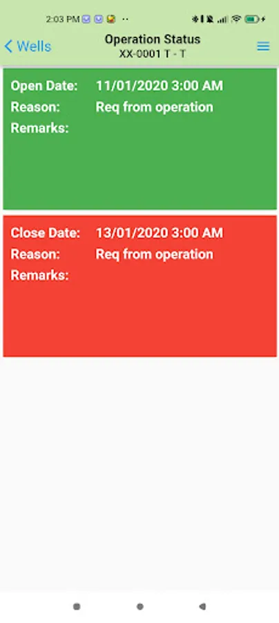 · Well operation status.
