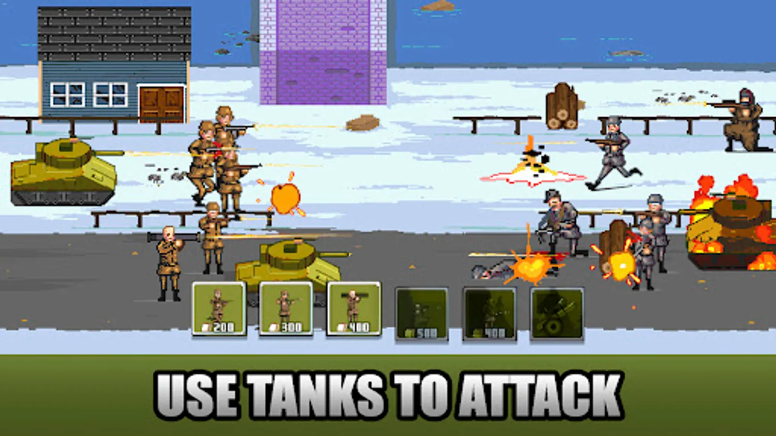 Battle with German and British army to conquer the world in world war 2. Make strategic decisions, lead military operations with snipers, bazooka's, officer, and tanks.