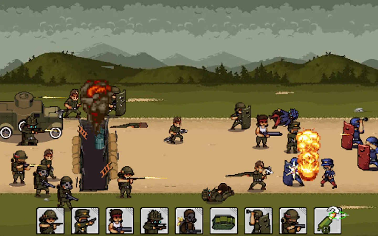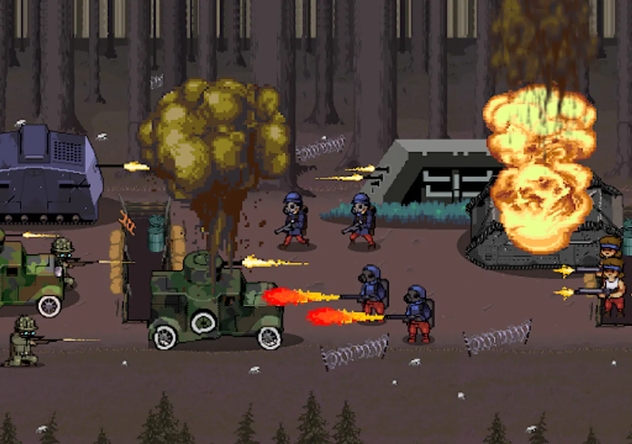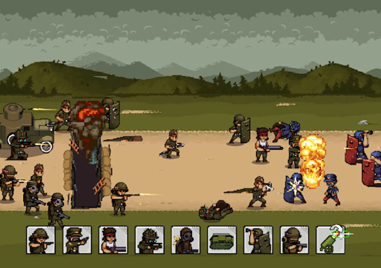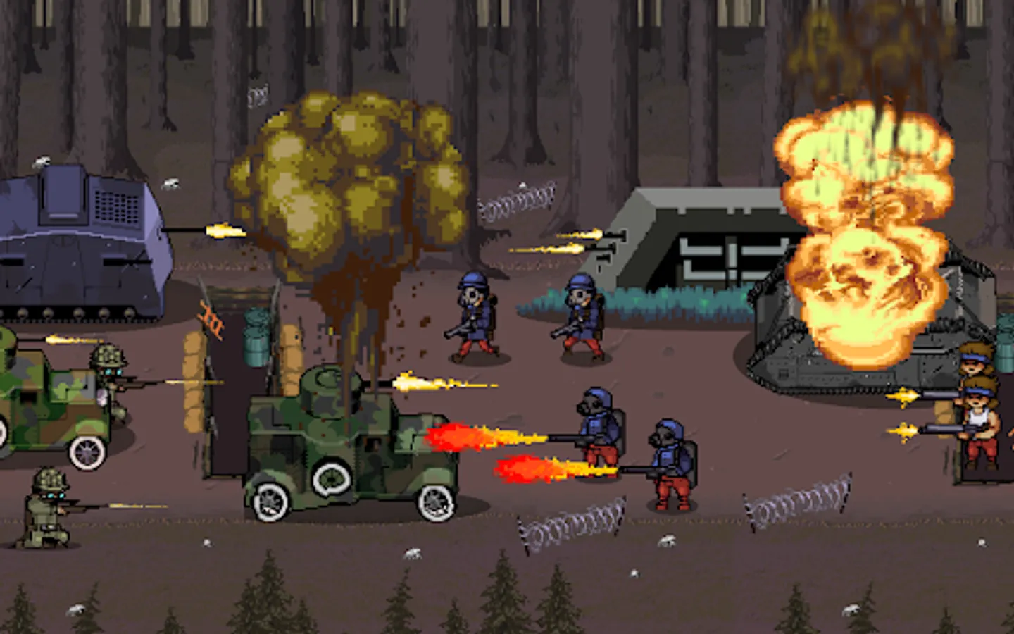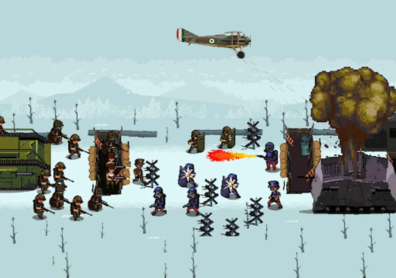 Experience the thrilling action of Trench Warfare 1914: WW1 RTS Game, a strategic game set in the momentous era of World War I. Engage in intense warfare, deploy troops, utilize powerful weapons and armored vehicles, and defeat enemies. With its captivating gameplay and stunning pixel art graphics, this game offers a unique blend of strategy, shooting, and sandbox elements. Immerse yourself in the historical backdrop of WWI as you command armies from various countries, including Germany, Austria-Hungary, Bulgaria, the United Kingdom, France, Russia, Italy, Romania, Canada, Japan, and the United States.