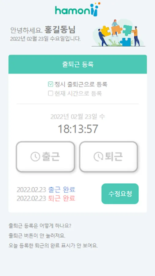 Harmony is a HR, attendance, and salary management service for small and medium-sized businesses and small business owners. According to the classification of regular workers, contract workers, and daily workers, the optimal process is provided through an intuitive UI. You can manage your company's labor issues very easily.