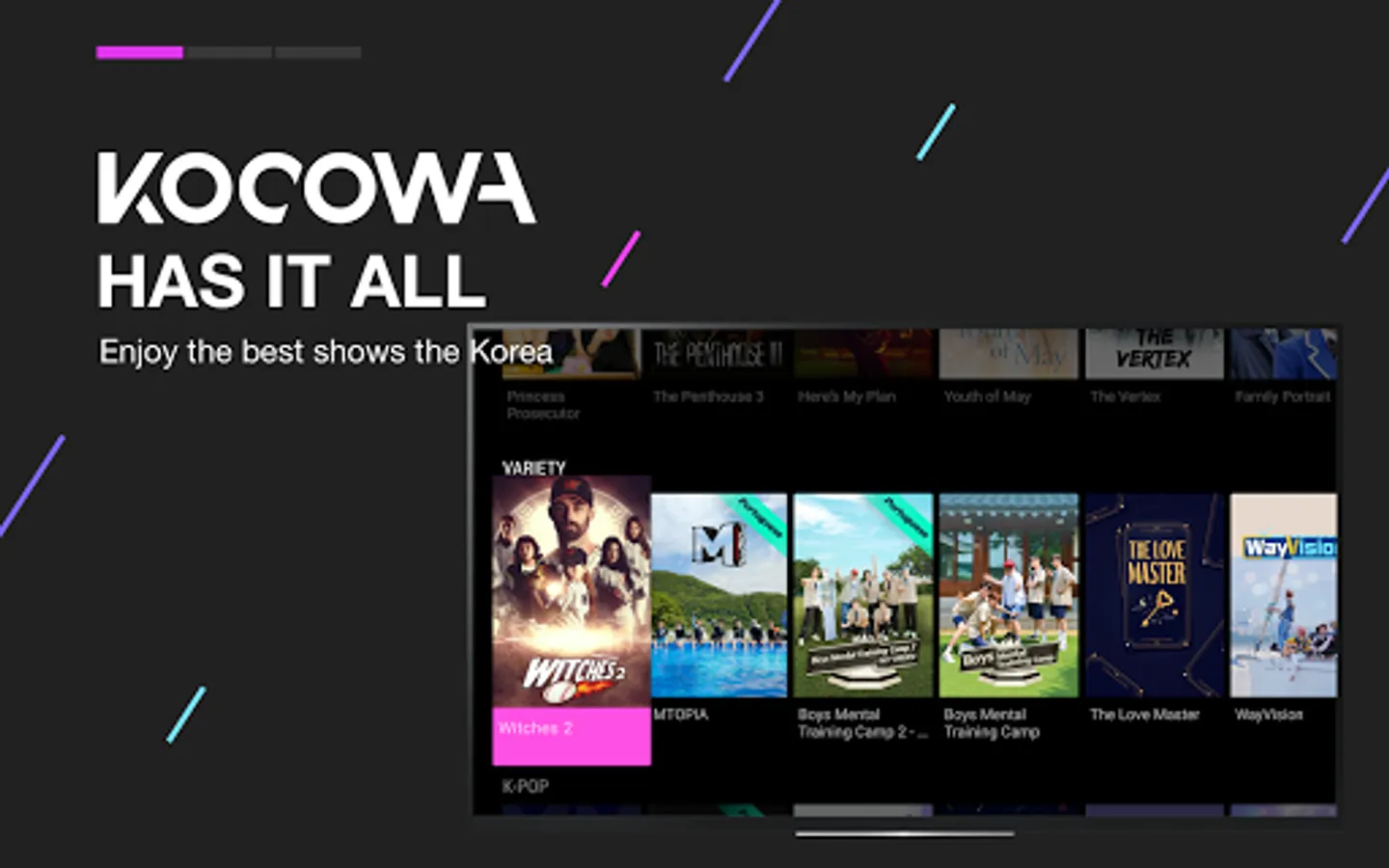 Stream hit programming direct from Korea and get exclusive access to one of the largest Korean Entertainment collections across the Americas featuring films, dramas, romantic comedies, reality, and variety series, all with multi-language subtitles.