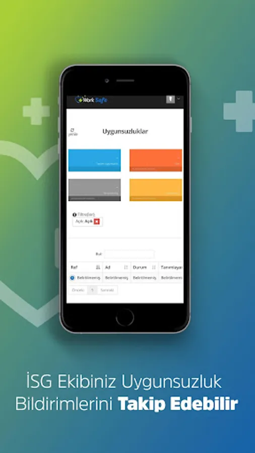 WorkSafe Mobile is a full OHS software that we provide to occupational physicians and occupational safety specialists, trainings, nonconformity, suggestion entry, corrective preventive action (dof), checklists, emergency plans, risk assessments, work accidents, near misses, PPE determination and It provides a complete solution for all your OHS needs such as delivery, board meetings, work equipment, exercises, environment measurements, activity permits, examinations (work entry, periodic, outpatient clinic), appointment, risk groups, health reports, health risks.