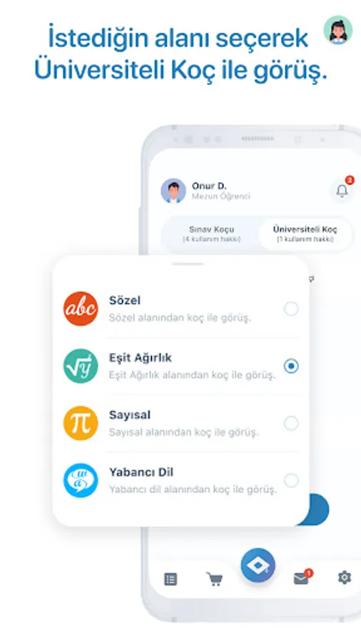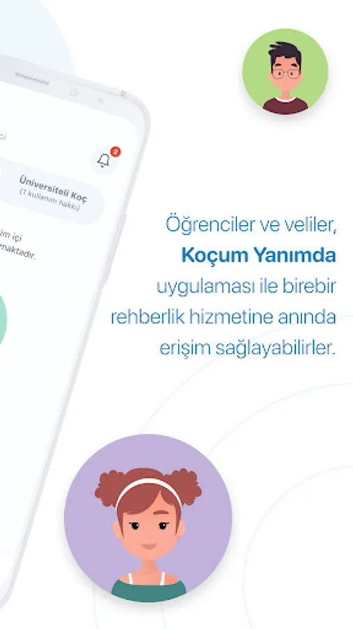 Koçum Yanimda is a new generation online guidance application. Students and parents can start a 15-minute live interview by pairing up with Exam Coaches, consisting of psychologists and psychological counselors, and University Coaches who have graduated from university exams, specifically for the guidance topics they want to discuss. In addition, they can ask questions about guidance and get quick answers via 24/7 messages. Students who are preparing for LGS and YKS, as well as all intermediate class students and their parents can receive service from this application.