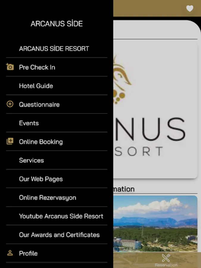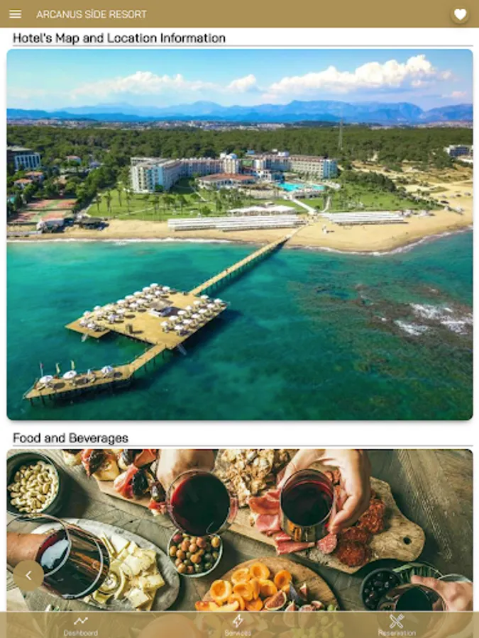 Arcanus Side Resort mobile application provides our guests with the opportunity to enjoy a comfortable holiday by accessing detailed information.