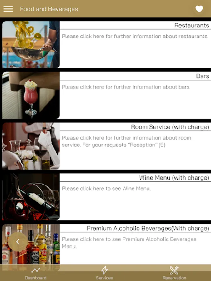 You can check what activities are currently in the hotel and which restaurants are serving through the application. The application allows you to easily access many services.