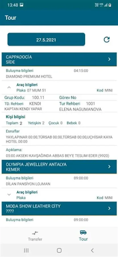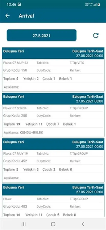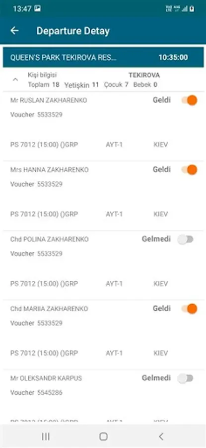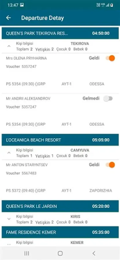 They can follow the transfer operation and tour operation tasks and inform the office by selecting the arriving/non-arriving passengers.