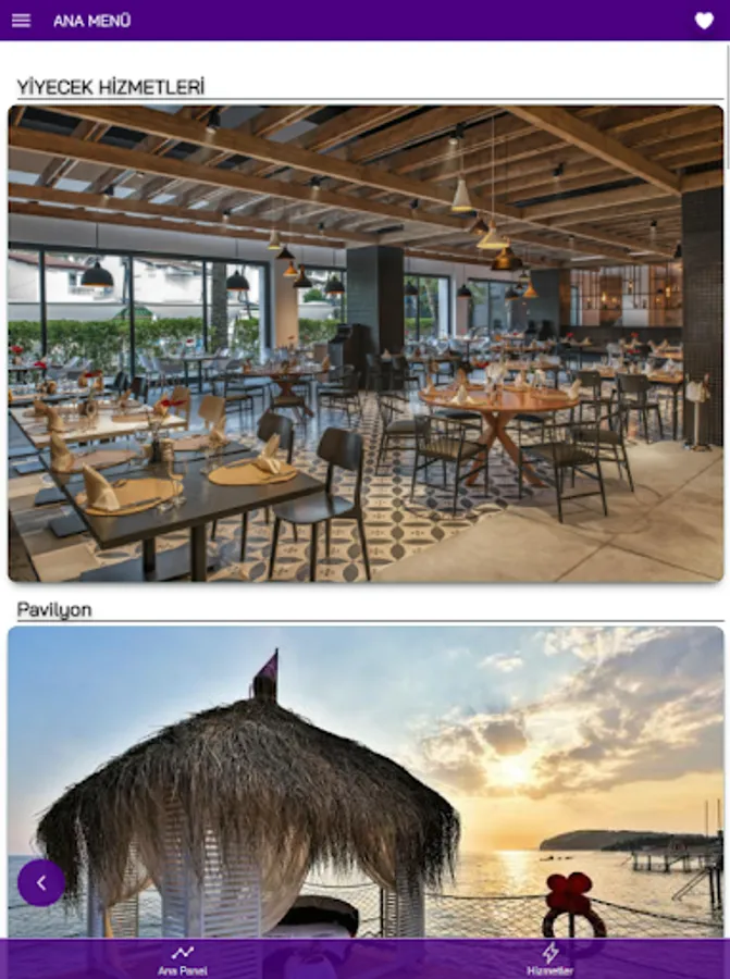 Double Tree by Hilton Kemer mobile application provides our guests with the opportunity to have a comfortable holiday by accessing detailed information. You can check what activities are currently in the hotel and which restaurants are serving through the application.