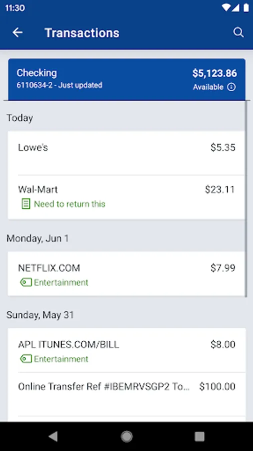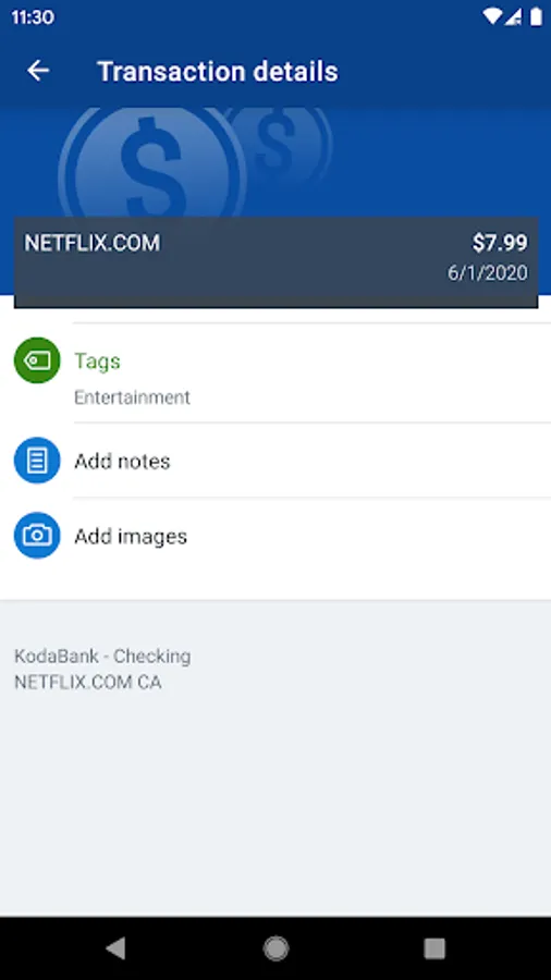 Add Tags, Notes, Images & Geo-Information: By enhancing transactions with custom tags, notes or photos of a receipt or check, you have the ability to stay organized and find exactly what you’re looking for when searching through your finances.
