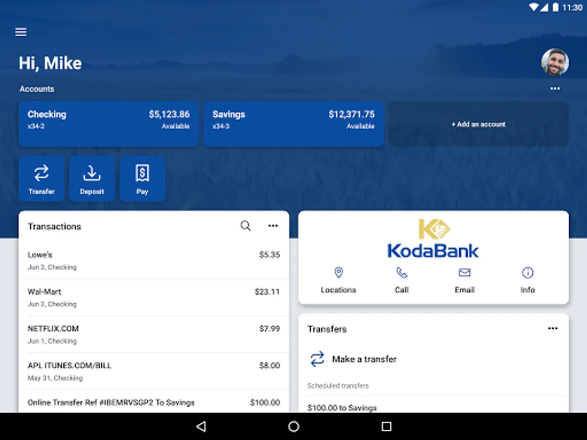To use the KodaMobile App, you must be enrolled as an KodaBank Internet Banking user. If you currently use our Internet Banking, simply download the app, launch it, and login with the same Internet Banking credentials. After you successfully login to the app, your accounts and transactions will begin updating.