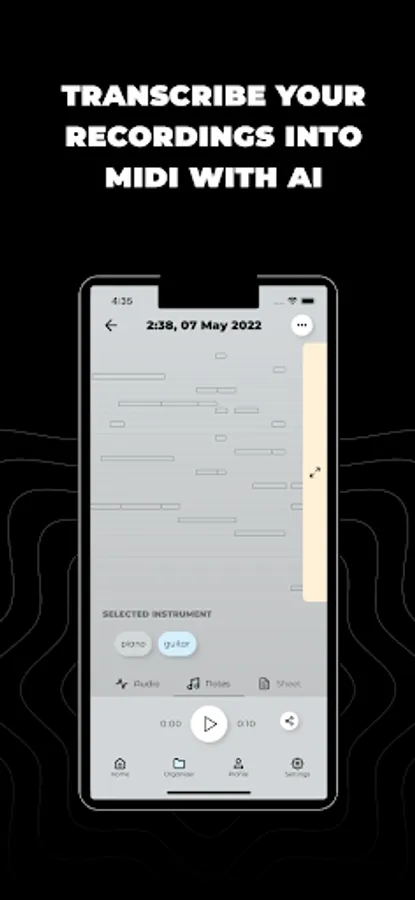 Create an account to transcribe your audio recordings to midi files using state-of-the-art AI technology.