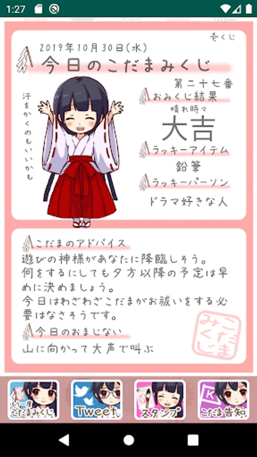 こだまみくじは毎日運試しができるおみくじアプリです。
