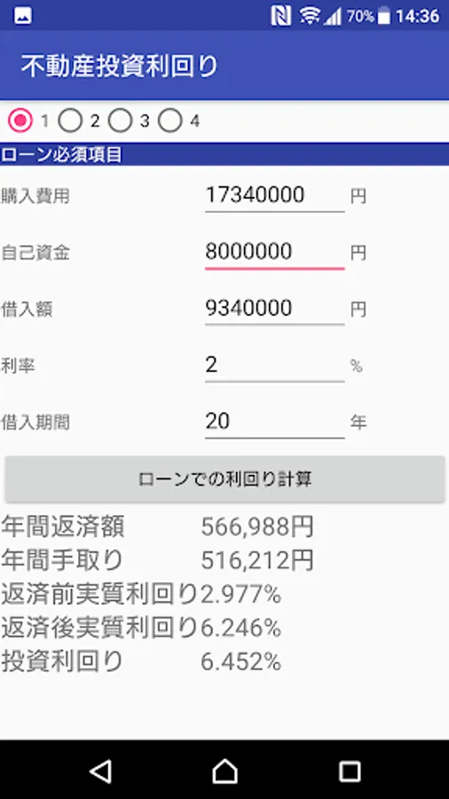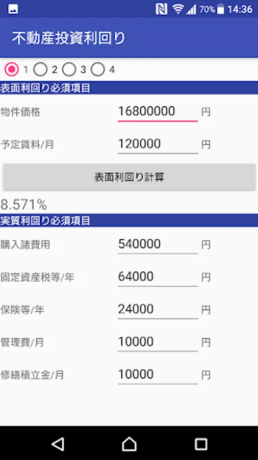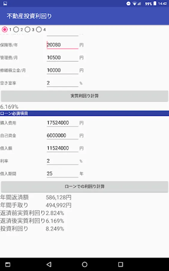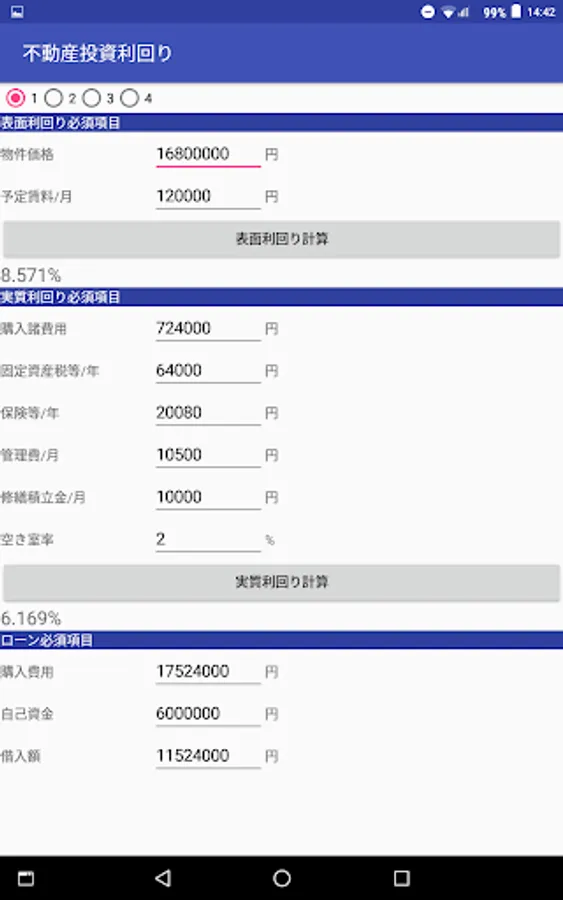Surface yield of real estate investment, real yields, repayment before and after the yield at the time of loan introduction, is an application to calculate the investment yield.