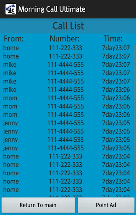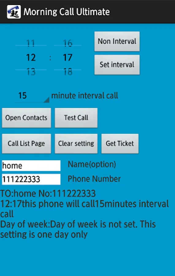 you can see past call on Call List screen. also you want to use this app specific day of week, you can decide day of week from menu.