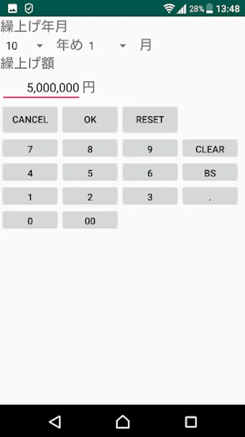 By pressing the advance setting button, you can set the amount of advance repayment on which month of which year. Check the advance check box to apply the advance.