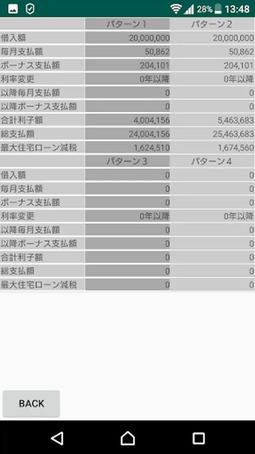 When you press the calculation button, the payment amount, bonus payment amount, total payment amount, maximum mortgage deduction amount of each institution are displayed.