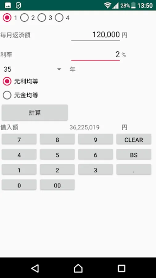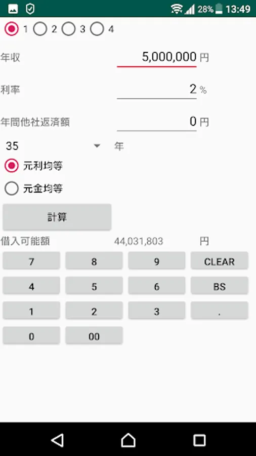 Enter the monthly repayment amount and interest rate, the number of years, select the principal equal or principal equal and press the calculation button to display the appropriate borrowing amount.