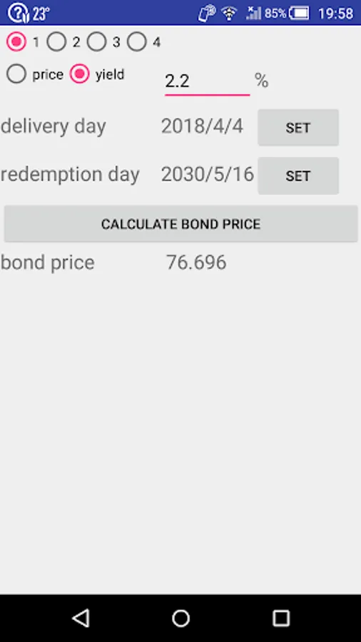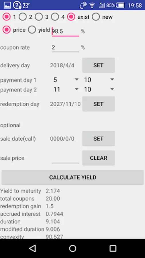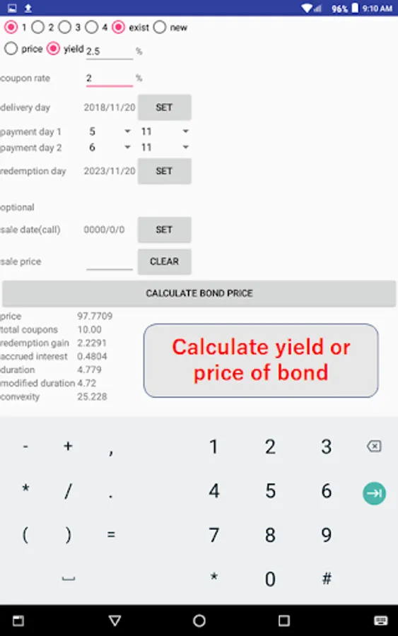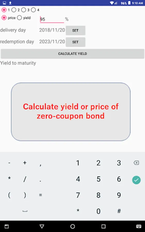 This app calculates the United States formula yield of dollar-denominated bonds.