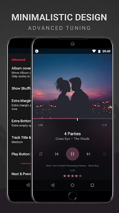BlackPlayer EX removes the Ads to focus on what matters the most, music. Includes tons of extra premium features. Of course all of the excellent features of standard BlackPlayer is also included in this music player. Make your own interface with the customization found in the Settings menu.