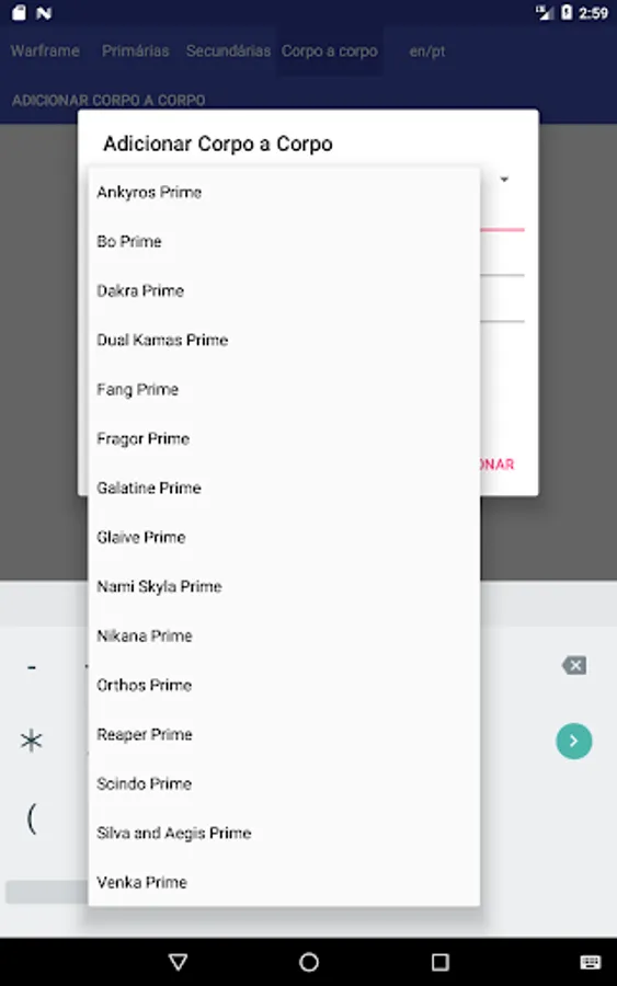 This application and it's creator are not in any way associated with Warframe and Digital Extremes.