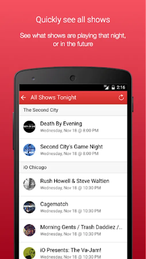 Improv Tonight is the easiest way to see what improvisational shows are playing around your city! Easily find improv shows at Second City, iO, Annoyance, UCB, and more!
