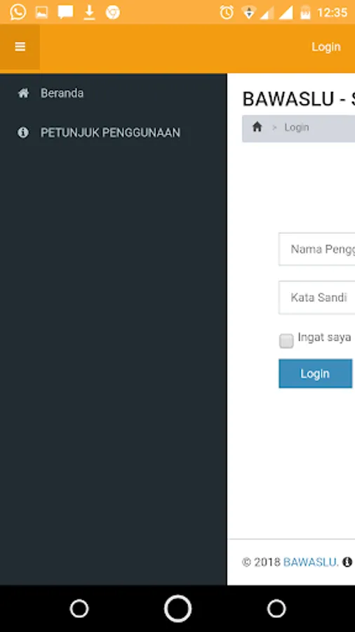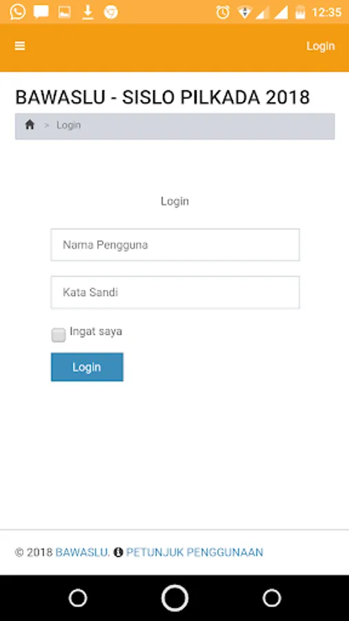 SISLO ELECTION 2018: The online system based website and Android app. Which is the development of a way of manual reporting from polling stations to the provincial level. The Android app can be downloaded directly on Google PlayStore using the keyword "Bawaslu Election 2018". User ID and password for the user obtained through the provincial officer.