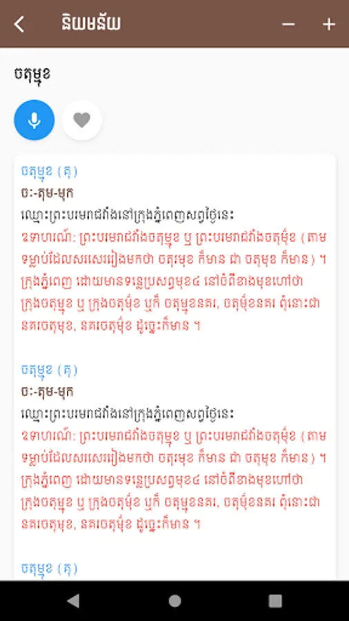 ChounNat Khmer Dictionary app is a Khmer to Khmer dictionary which help explaining difficult Khmer word for easy understanding.
