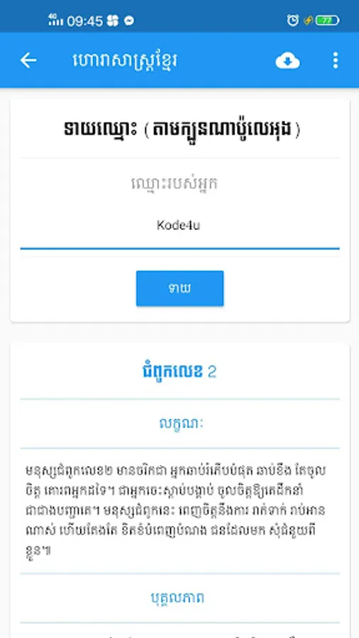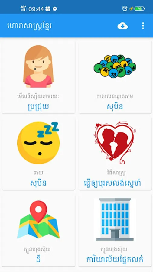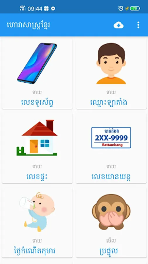 This app contains a lot of Khmer Horoscope such as :