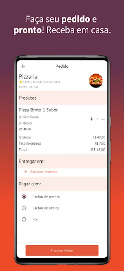 Another advantage of using Vem Food is the ease and security when making the payment. You can pay with credit card, debit card or even use PIX when you receive your order.