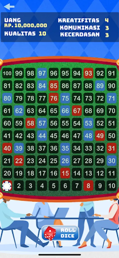 Players will act as businessmen who will make decisions. The business’s success parameters in this game are the number of assets (the value of money) and the quality of a business, as well as the self-development of the founder which consists of 3 aspects, namely creativity, communication, and intelligence.
