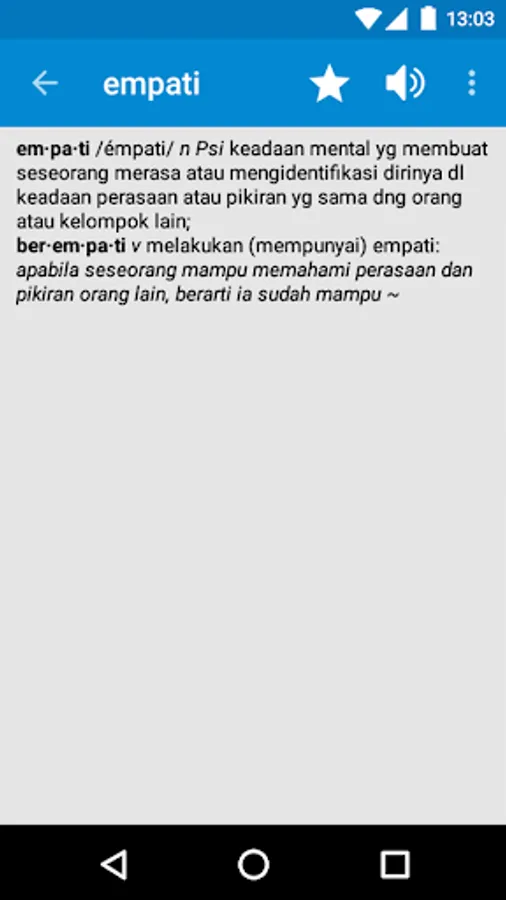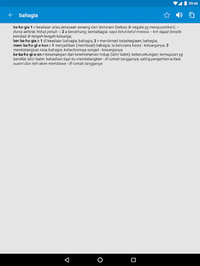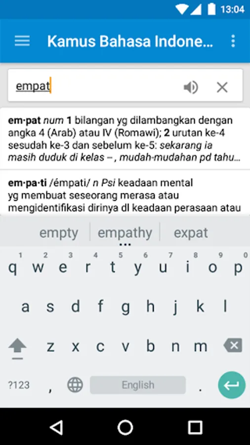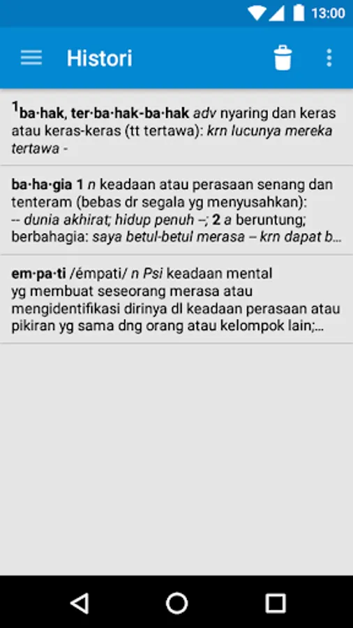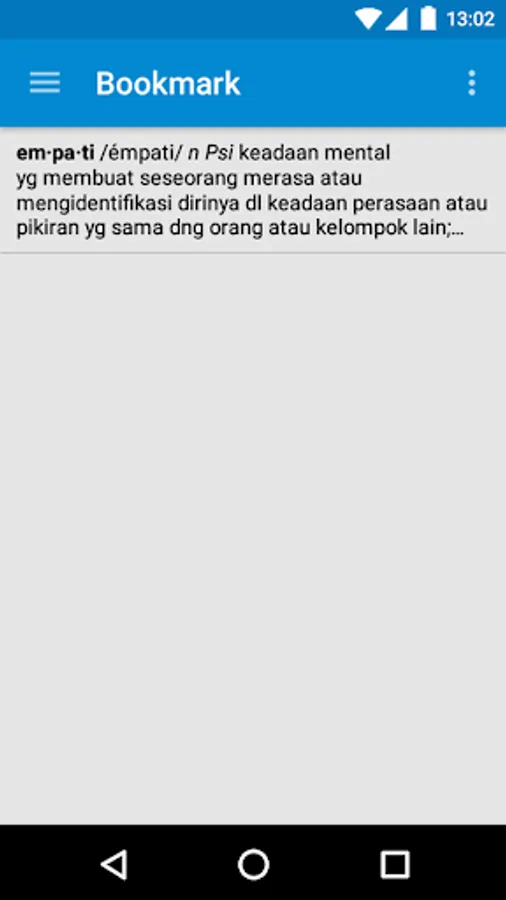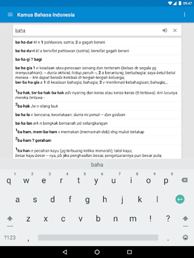 Dictionary larynx (offline) it does not require an internet connection to search, index search sorted by word basis, and the explanation derived from the word does not become part of the search index so that the search can be expedited. Data abstracted from the Dictionary of Indonesian.