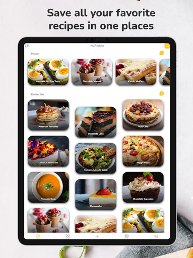 - My recipes – View and sort your beautiful recipe collection. Search all your recipes by title or ingredients. Pin the recipes that you cook often at the top of the list for quick and easy access.