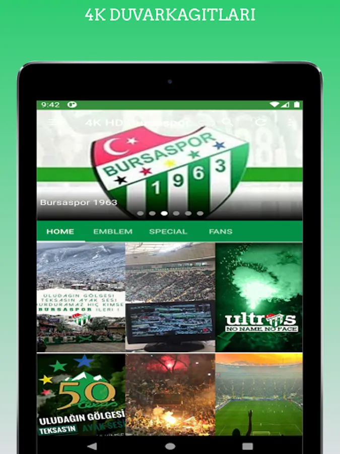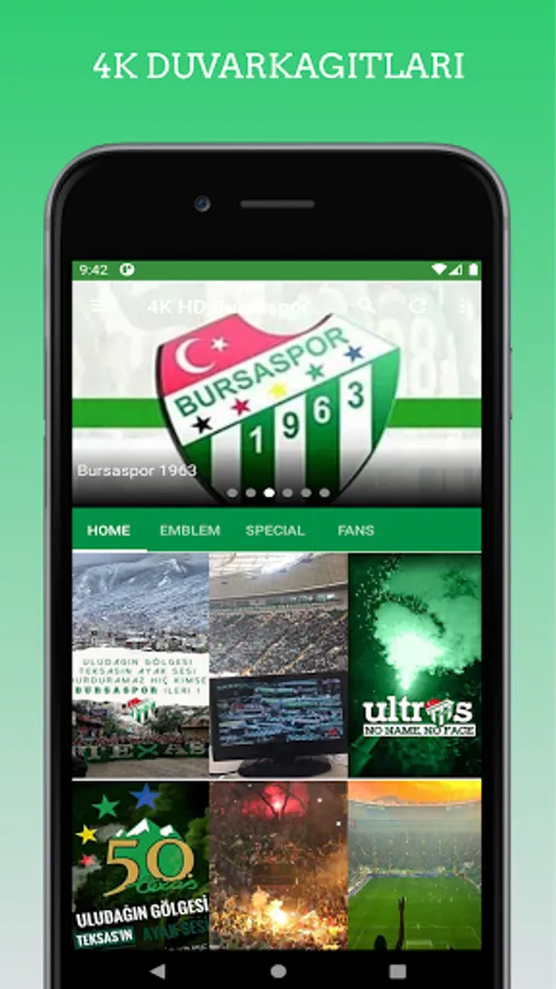 Liven up your phone with the Bursaspor Wallpaper application. You can find constantly updated wallpapers in this application and show everyone the most beautiful pictures of your team by adding them to your phone.