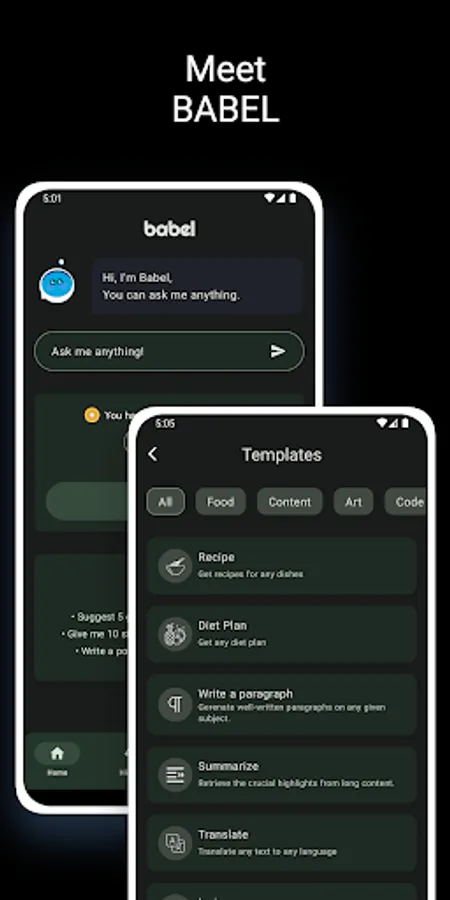 🎯 Ready-to-Use Prompts: Streamline your conversations with Babel's ready-to-use prompts. Simply select a prompt and let Babel guide you through engaging and dynamic interactions.