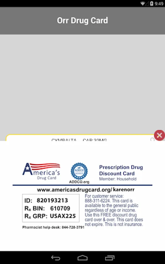 This free app sponsored by Karen Orr will allow you to save an average of 15-55% on your prescription medications, look up prescription drug pricing, pharmacy locations and answer frequently asked questions.