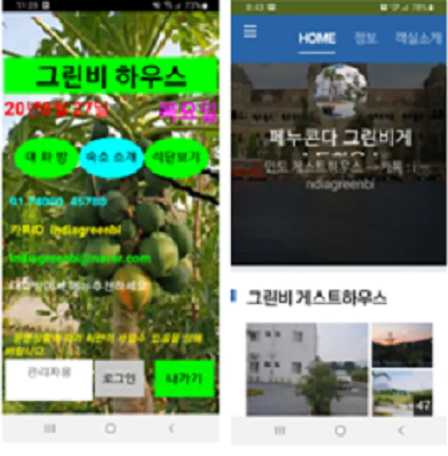 It is an app that allows you to view the introduction and diet of Green Bee Guesthouse near the Kia Motors plant in India, and to provide customers with delicious meals by recommending menus.