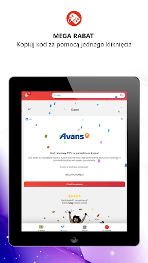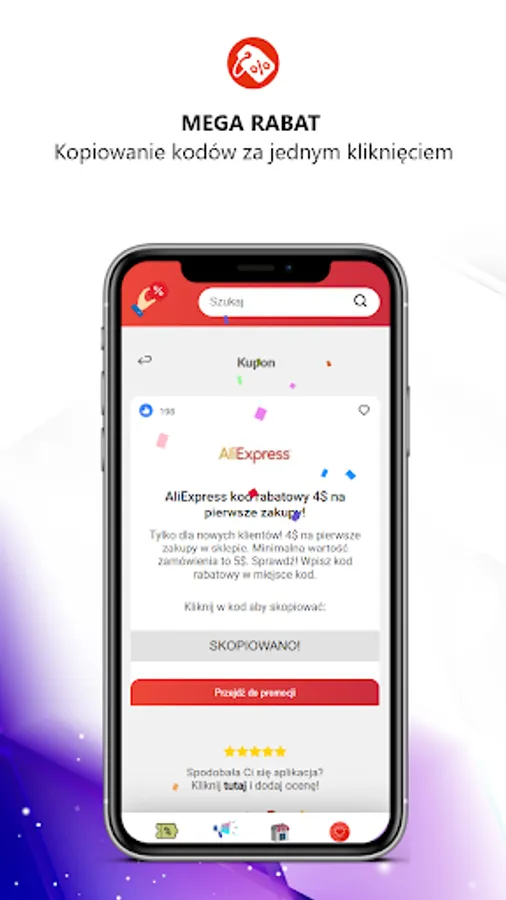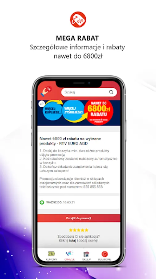 Mega Rabat is a mobile application that has many free discount codes and promotions. New stores are added daily and supplemented with codes that lower the price of the product. Thanks to us, you can buy your favorite product cheaper without leaving your home. All you have to do is click on any coupon and copy the promotional code.