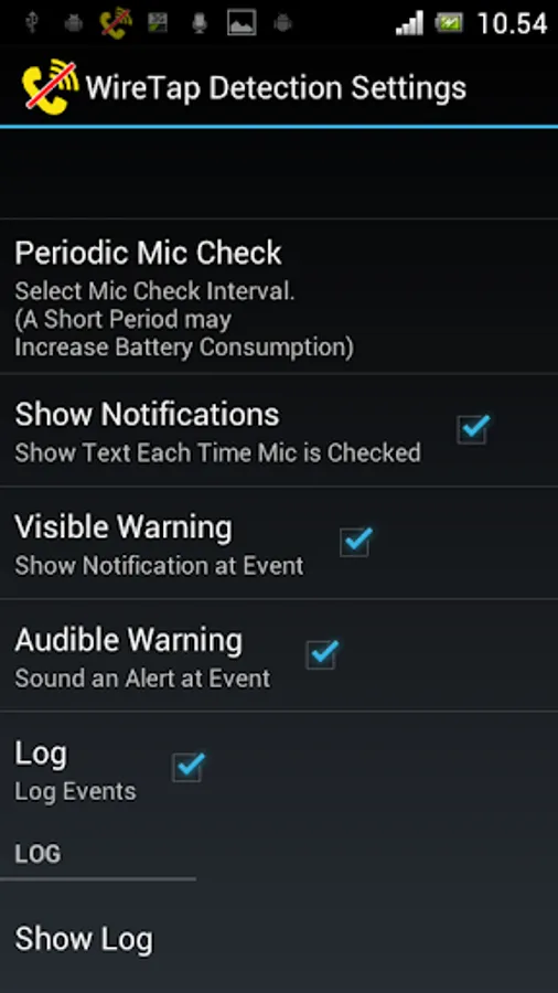 - A Simple Log will show you all Detected attempts to WireTap your Device