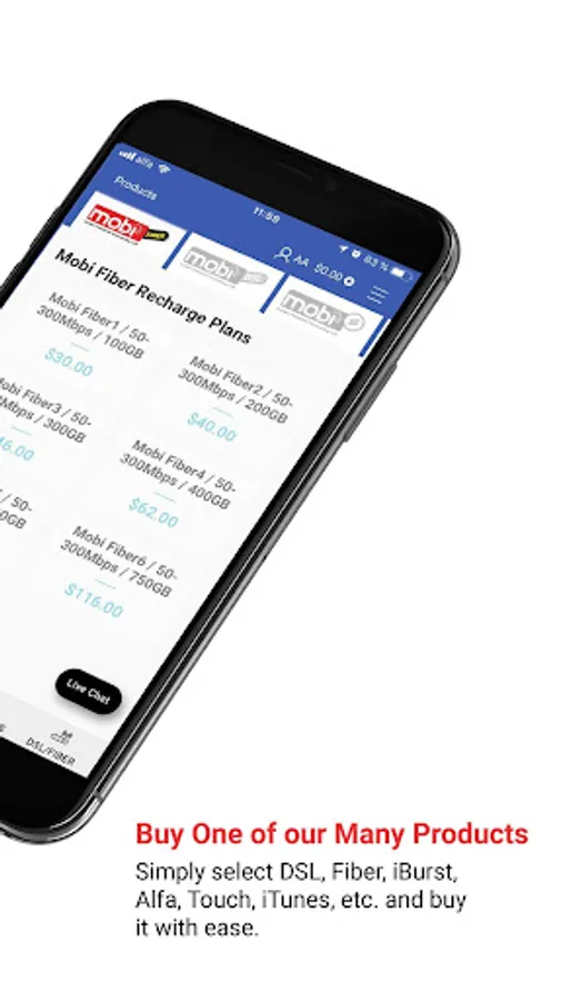 MyMobi app is a one-stop destination for managing your Mobi account. Now with the app it is very easy to apply for Mobi DSL or Fiber Optic, recharge your account, check your consumed quota, or buy other services like Alfa, Touch, Apple iTunes, Google Play, etc.